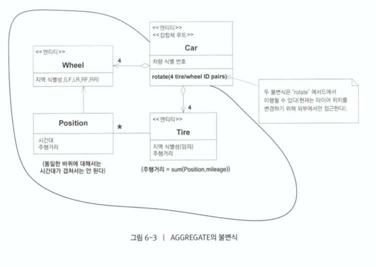 자동차 번호판은 그 차의 식별자가 될 것이기 때문에 자동차라는 도메인이 존재한다. 그렇다면, 타이어라는 도메인도 엔티티 객체로 가질 수 있을 것입니다. 종류, 마모상태 등을 파악할 때 이 또한 엔티티 객체로 가질 수 있을 것입니다. 그러나 만약 타이어와 자동차의 AGGREGATE를 따로 둔다면 어떤일이 일어날까?