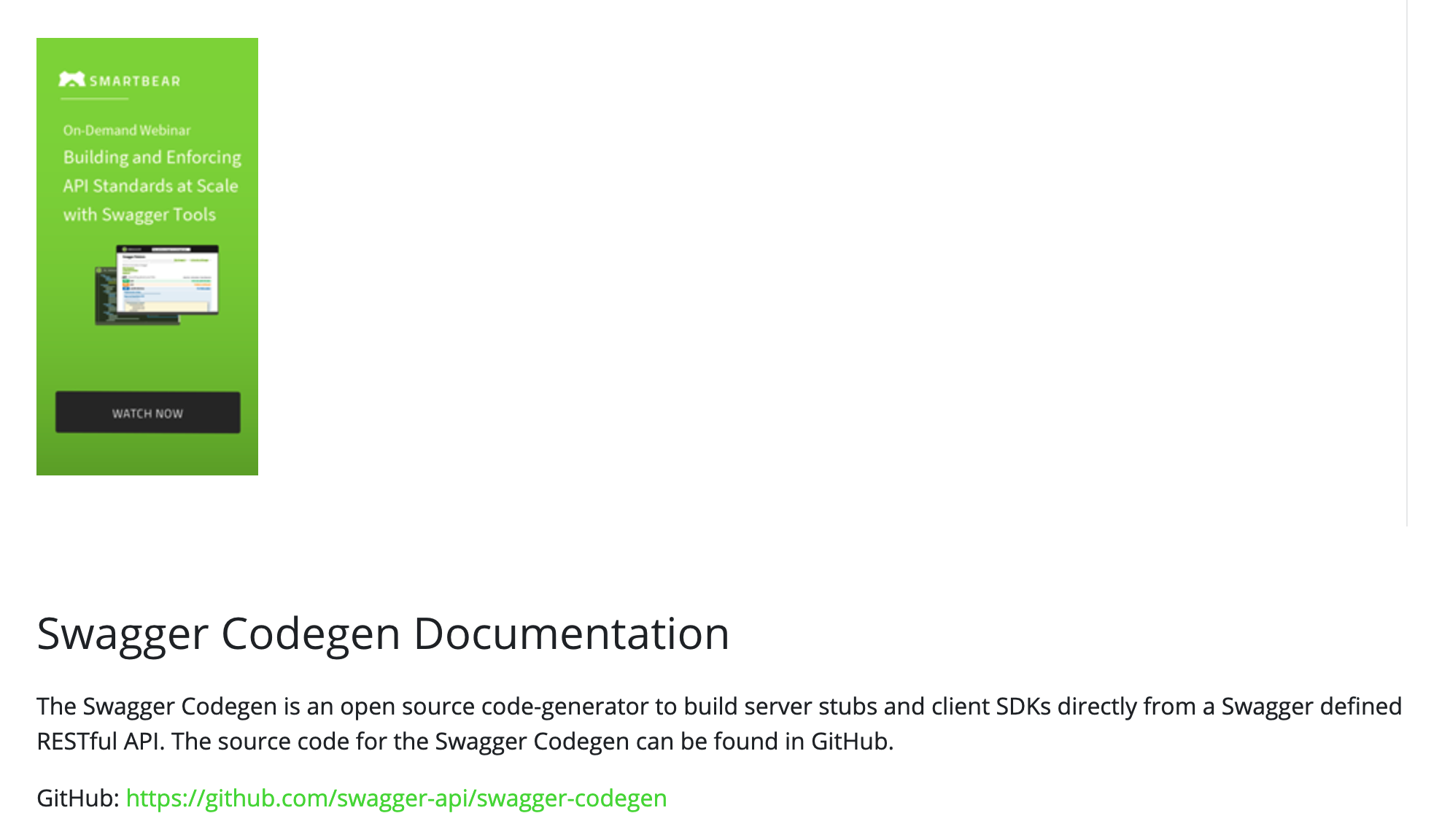 SwaggerCodegen의 Github README.md가 생각보다 그렇게 깔끔하지 않고, 정신이 좀 산만하긴 한데, 필요한 부분만 잘 찾아보면 원하시는 결과물을 만들 수 있을 것입니다. 그렇지 않다면, 댓글을 남겨주시면 같이 고민해보고 답변 드리겠습니다.