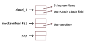 - getfield #15: 현재 클래스 상수 풀에서 15번 인덱스 내용을 피연산자 스택에 추가한다. 즉, UserAdmin admin 필드가 추가된다. admin 필드는 클래스 인스턴스이므로 레퍼런스가 추가된다.