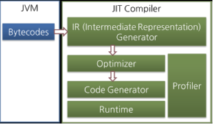 JIT 컴파일러는 바이트코드를 일단 중간 단계의 표현인 IR(Intermediate Representation)로 변환하여 최적화를 수행하고 그 다음에 네이티브 코드를 생성한다.