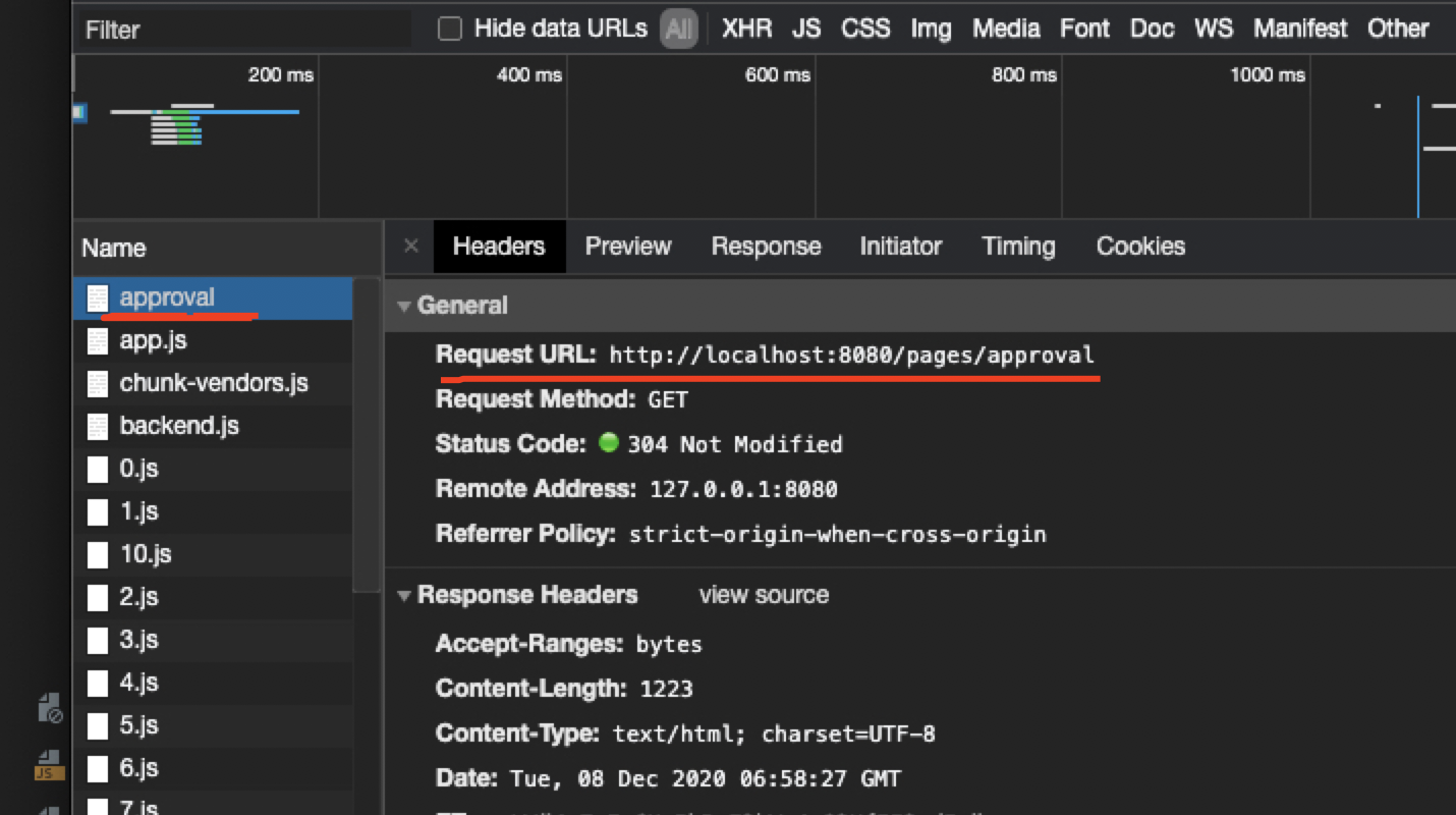 반대로 Hash 모드에서는 SPA 로서 동작됨으로써, 클라이언트에서 서버로 데이터를 요청하는 것은 필요한 부분만 요청하게 될 것입니다.