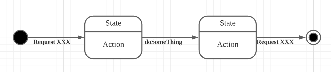 시작할 때 어떤 트리거(Request XXX)에 의해서 상태(State)가 변하게 될 것이고, 이때 도메인에서는 어떤 액션(Actions)들이 일어날 수 있는가? 또는 어떤 상태를 지닐수 있을까?