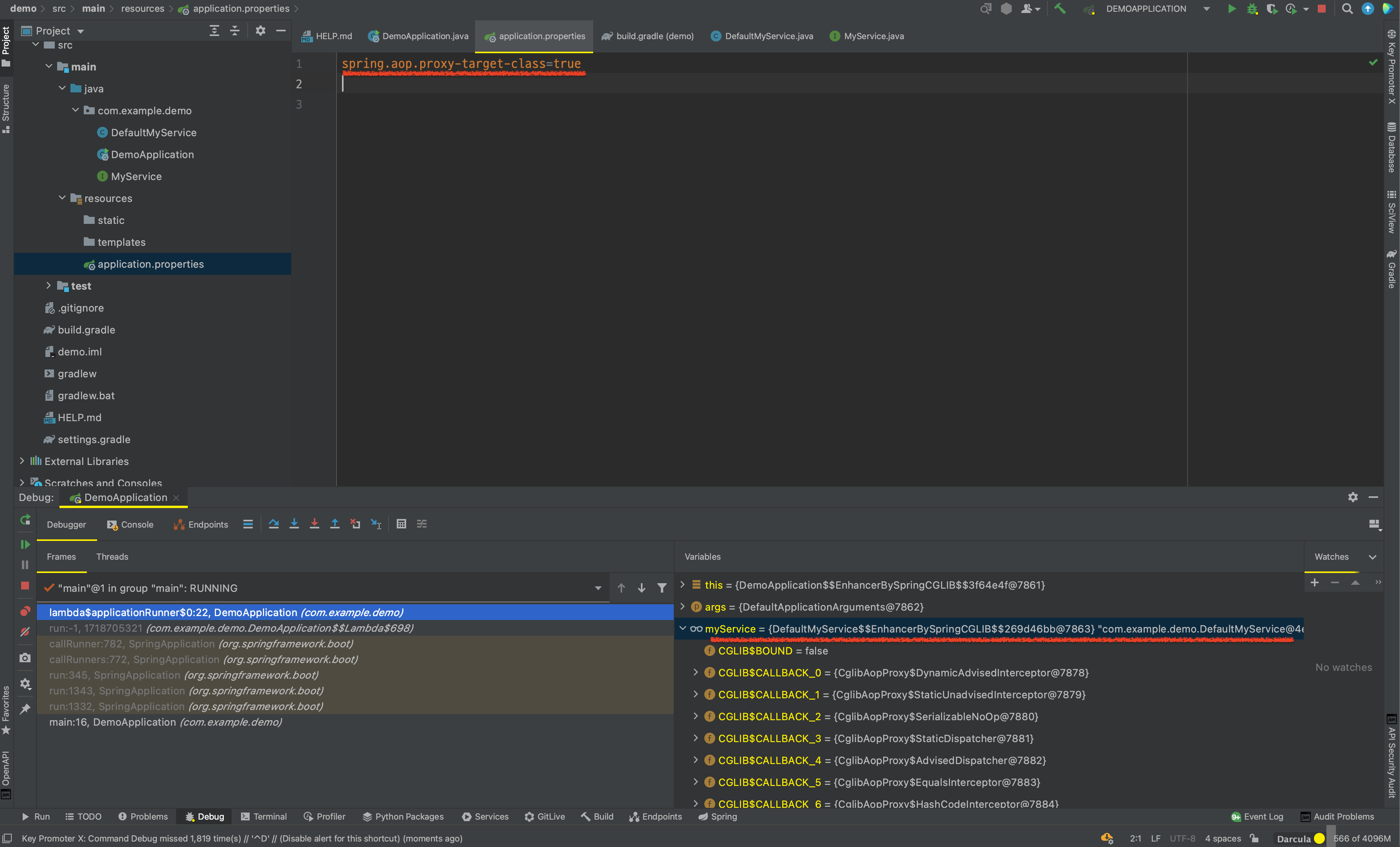 The bean 'defaultMyService' could not be injected as a 'com.example.demo.DefaultMyService' because it is a JDK dynamic proxy that implements: