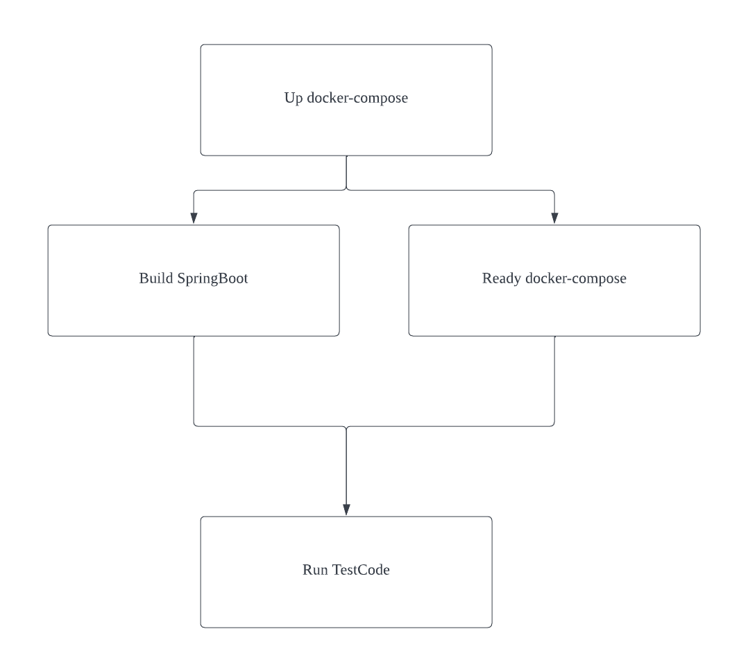 이를 그대로 TestContainers 를 활용해 docker-compose 를 up 하게되면 아래와 같은 순서로 동작됩니다.