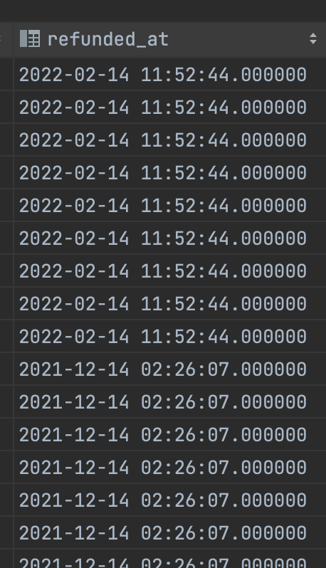 refunded_at 은 epoch time 으로 변환된 값이 삽입되었습니다.