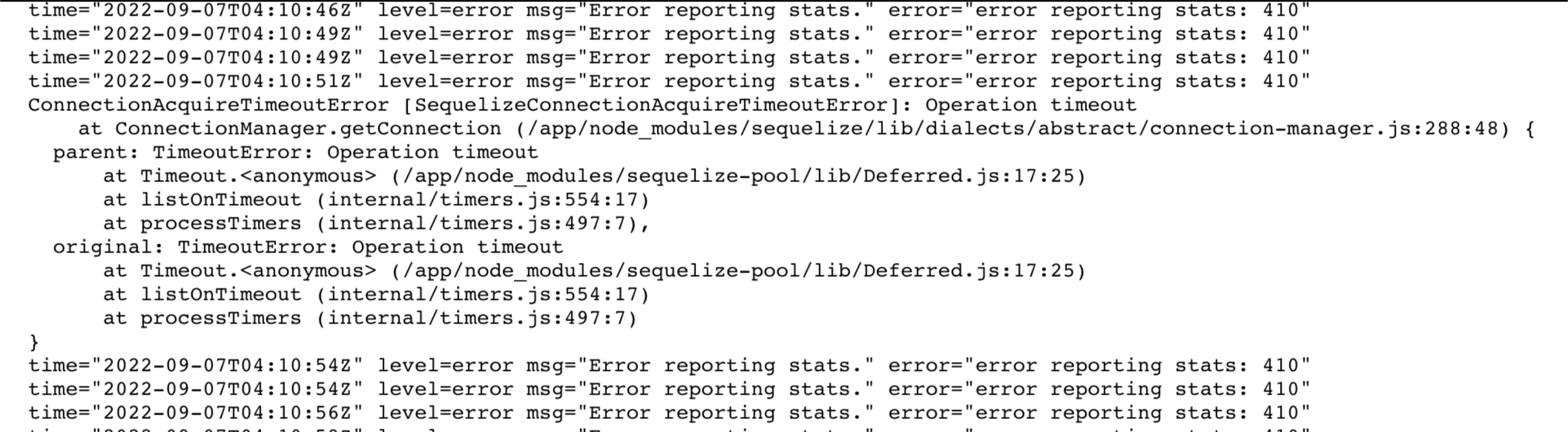 Node.js 에서 ConnectionAcquireTimeoutError 이 발생했는데, 이유를 알 수 없었습니다.
