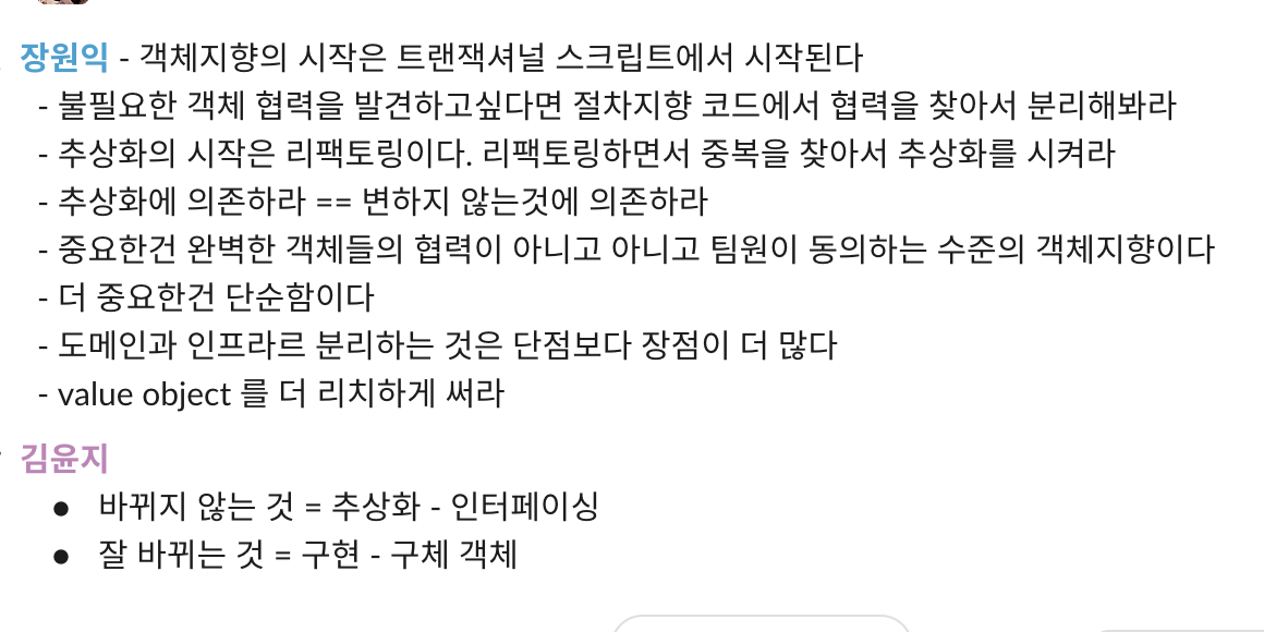 트레바리에서 (전) CTO님 덕분에 오브젝트 저자 조영호님과 티타임을 가질 수 있는 기회가 생겼습니다. 티타임 자리에서 물었던 질문에 대해서 기록을 남깁니다.