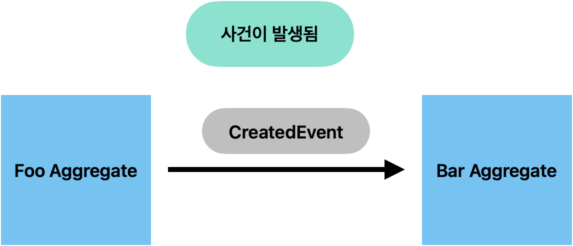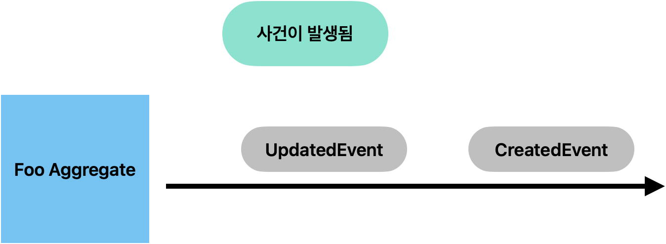 여기서 발생되어진 이벤트는 추후 Foo 라는 Aggregate 를 '재구성'하기 위한 용도로 활용됩니다. 즉, 이벤트을 사용하는 주체가 다릅니다. 그러므로, 도메인 주도 설계에서 말하는 도메인 이벤트 보다는 약한 의존 관계를 가진다 라고 말할 수 있습니다.