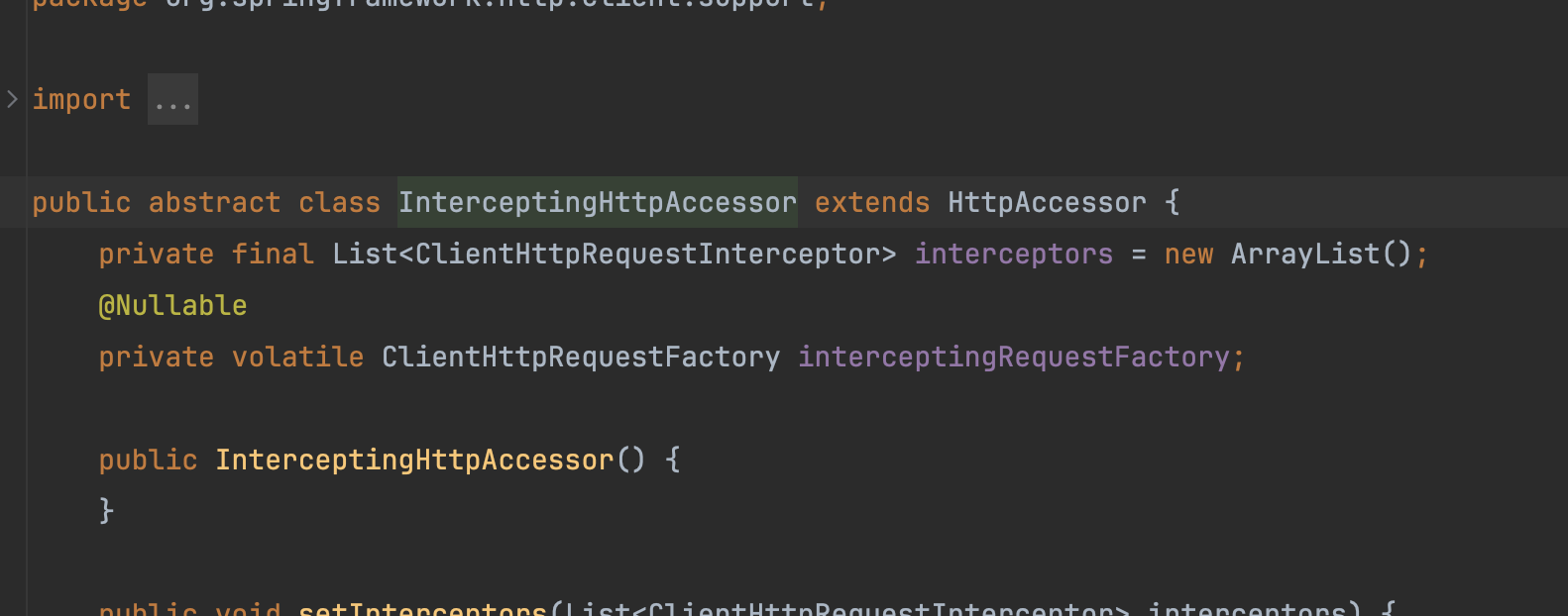 RestTemplate > InterceptingHttpAccessor > HttpAccessor > requestFactory