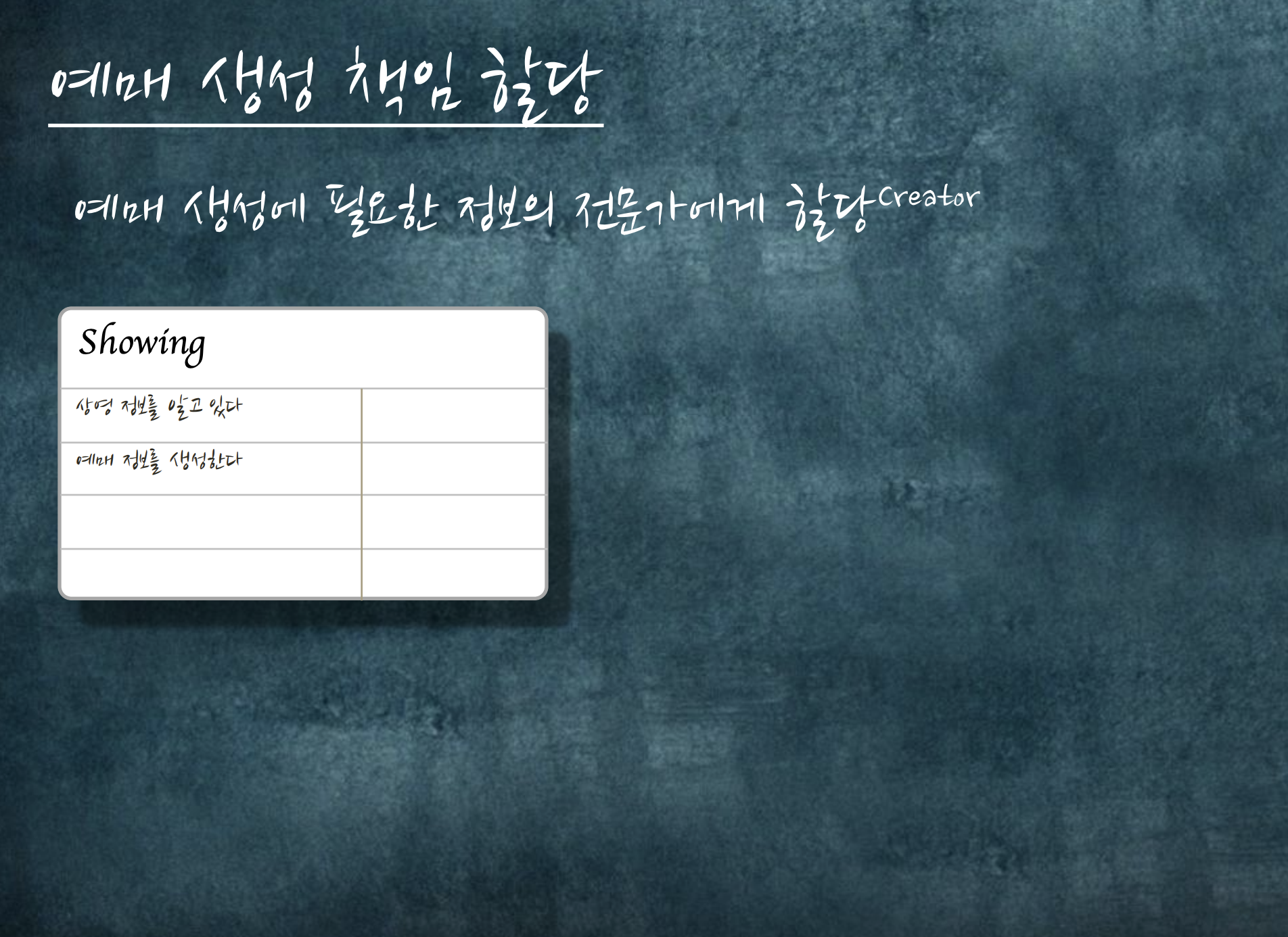 개념적으로 어떤 객체들이 어떤 책임을 가져야하는지 요구사항으로부터 어플리케이션으로부터 유도됩니다. 그리고 그 요구사항을 해결하기 위한 객체가 하나 나오고, 이런 식으로 객체간의 협력구조가 생성됩니다.