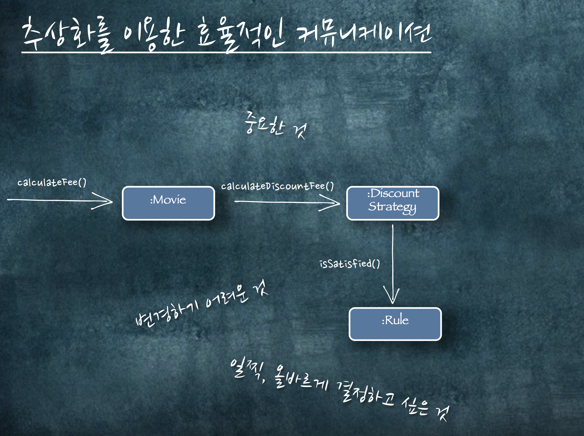 그러므로 최대한 단순하고 심플하게 만들어야 합니다. 그래야만 변경이 발생할 때마다