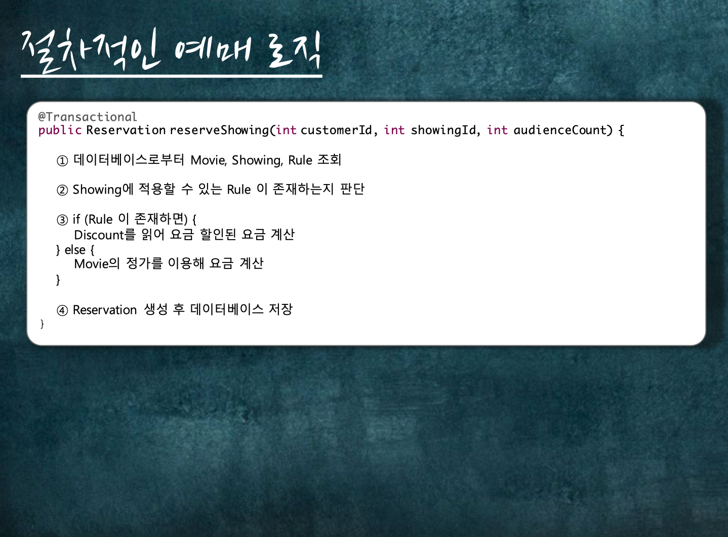 하지만, 이걸 도메인 모델링으로 가져간다면 이렇게 짜지 않는다는 이야기이다.