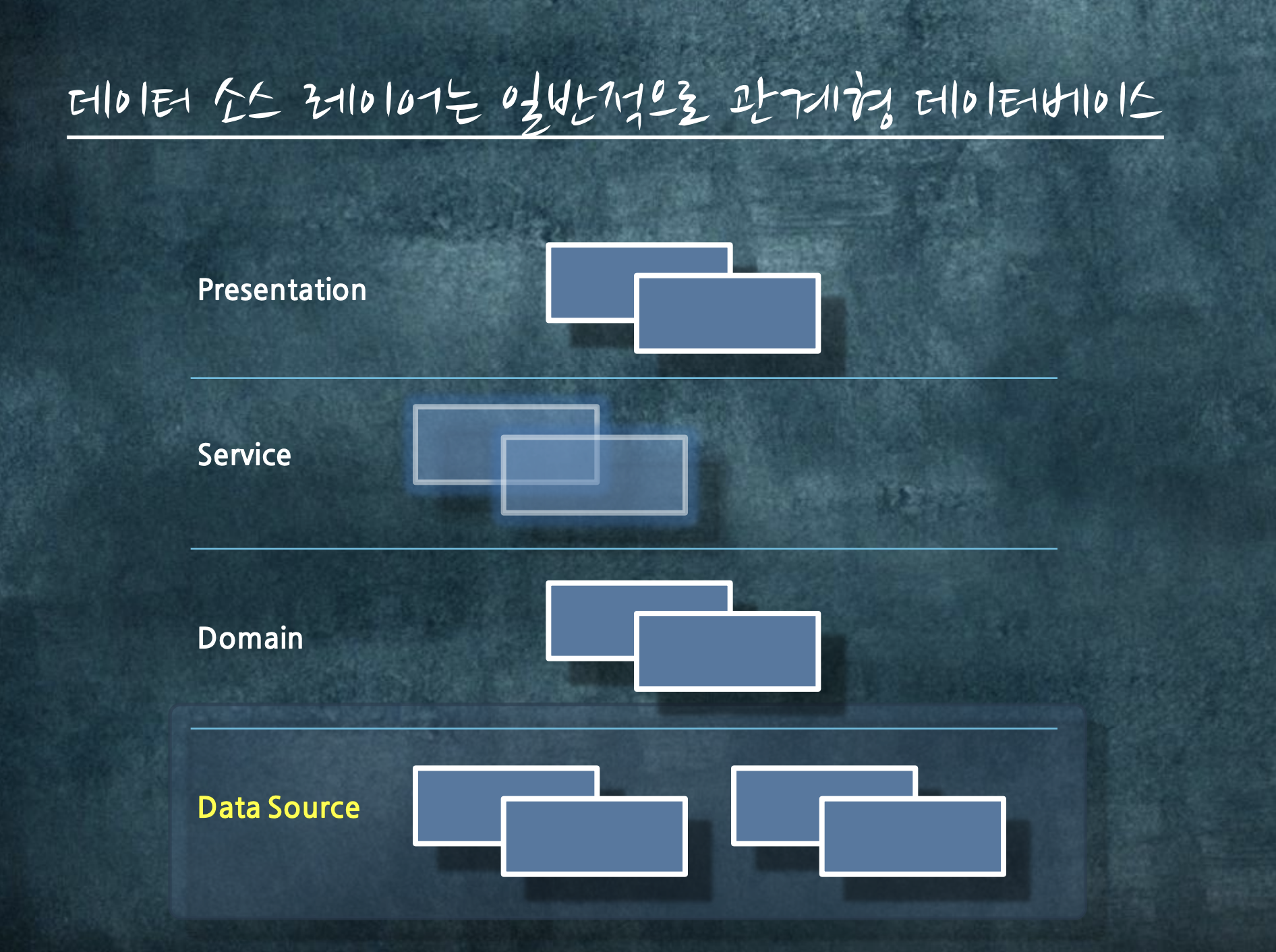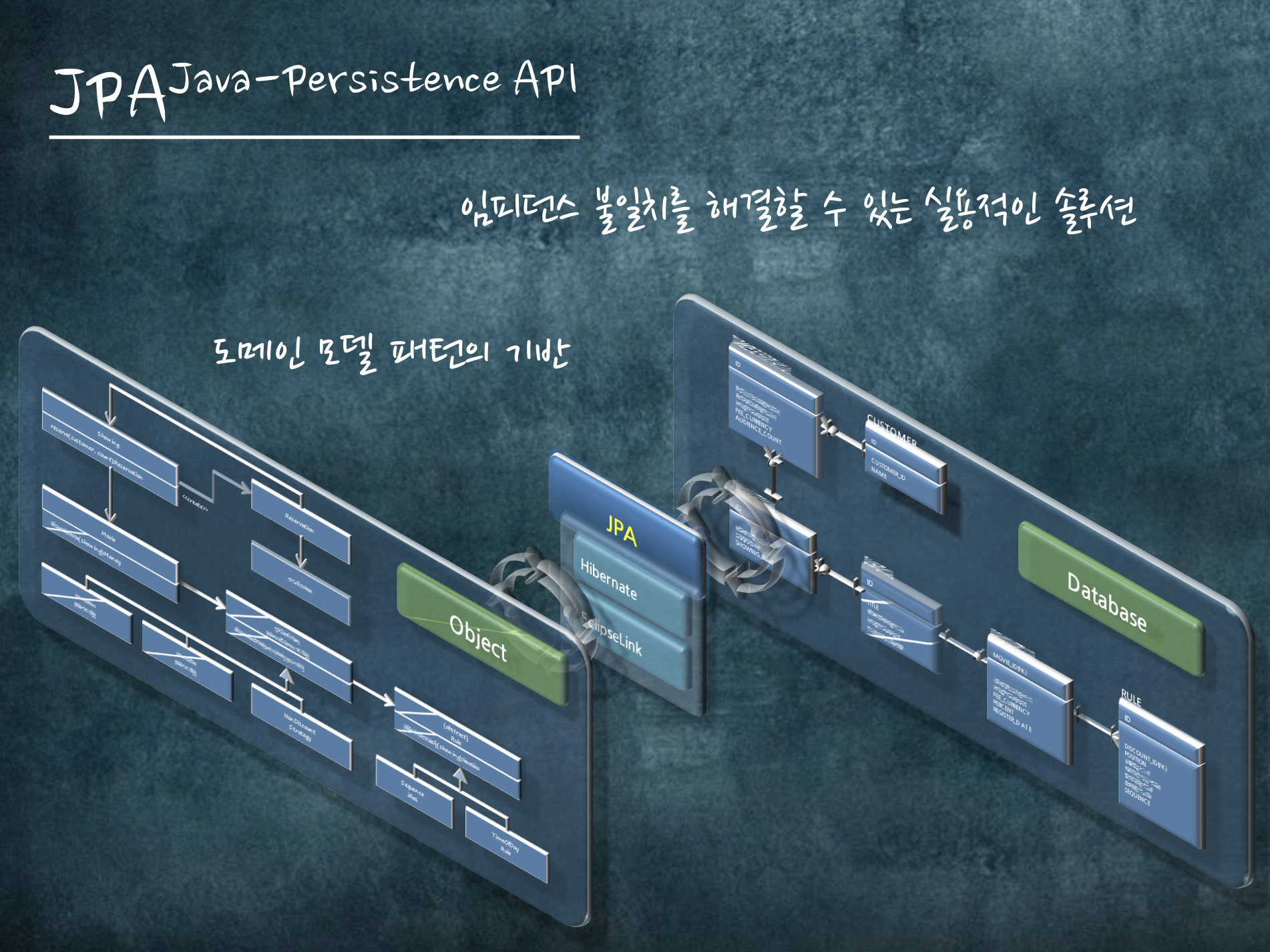 도메인 모델링을 하더라도, 데이터 소스를 담을 공간이 있어야 합니다. 그리고 대부분 그런 공간은 관계형 데이터베이스입니다.