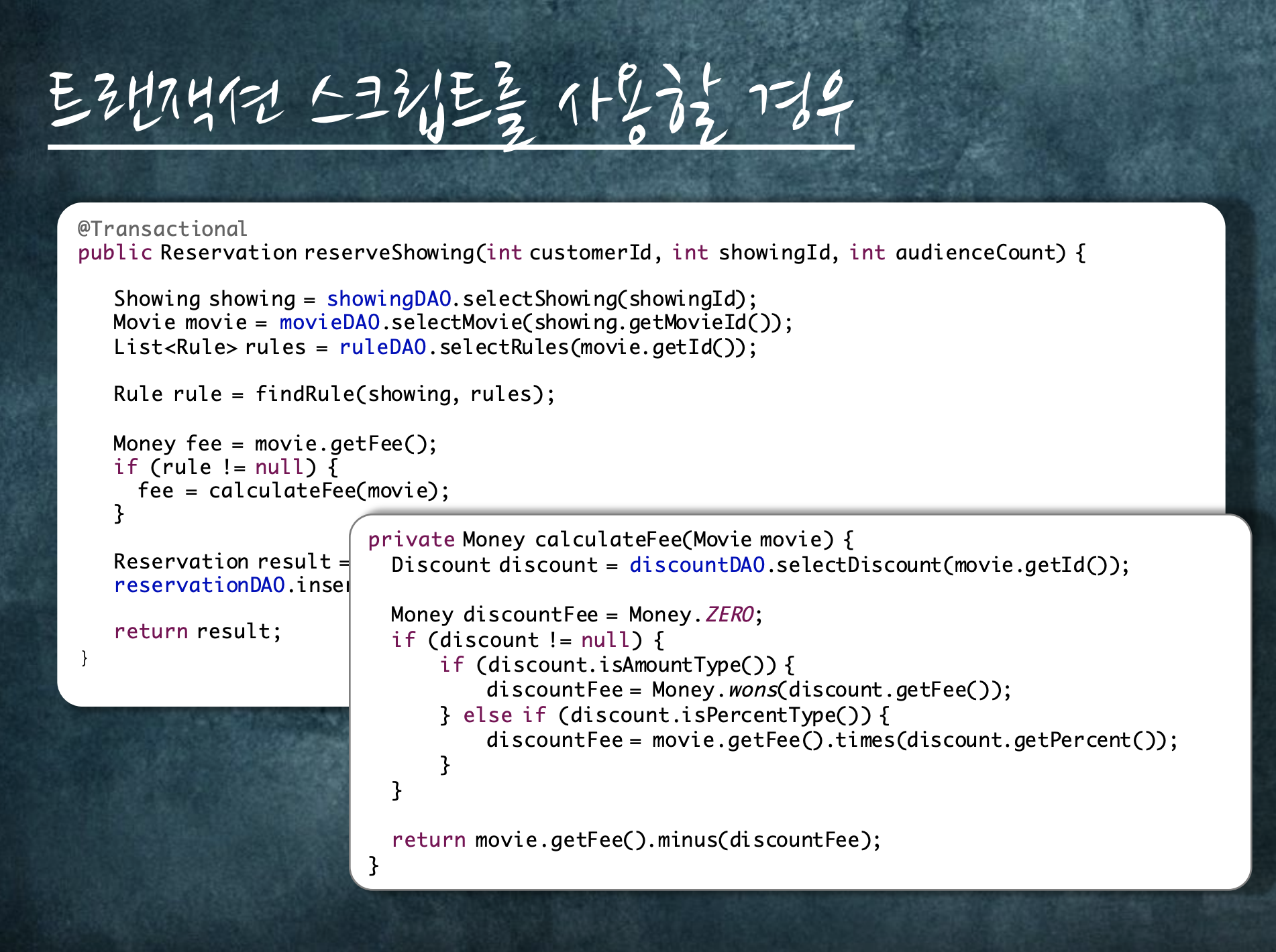 금액을 계산하는 행위는 같다.