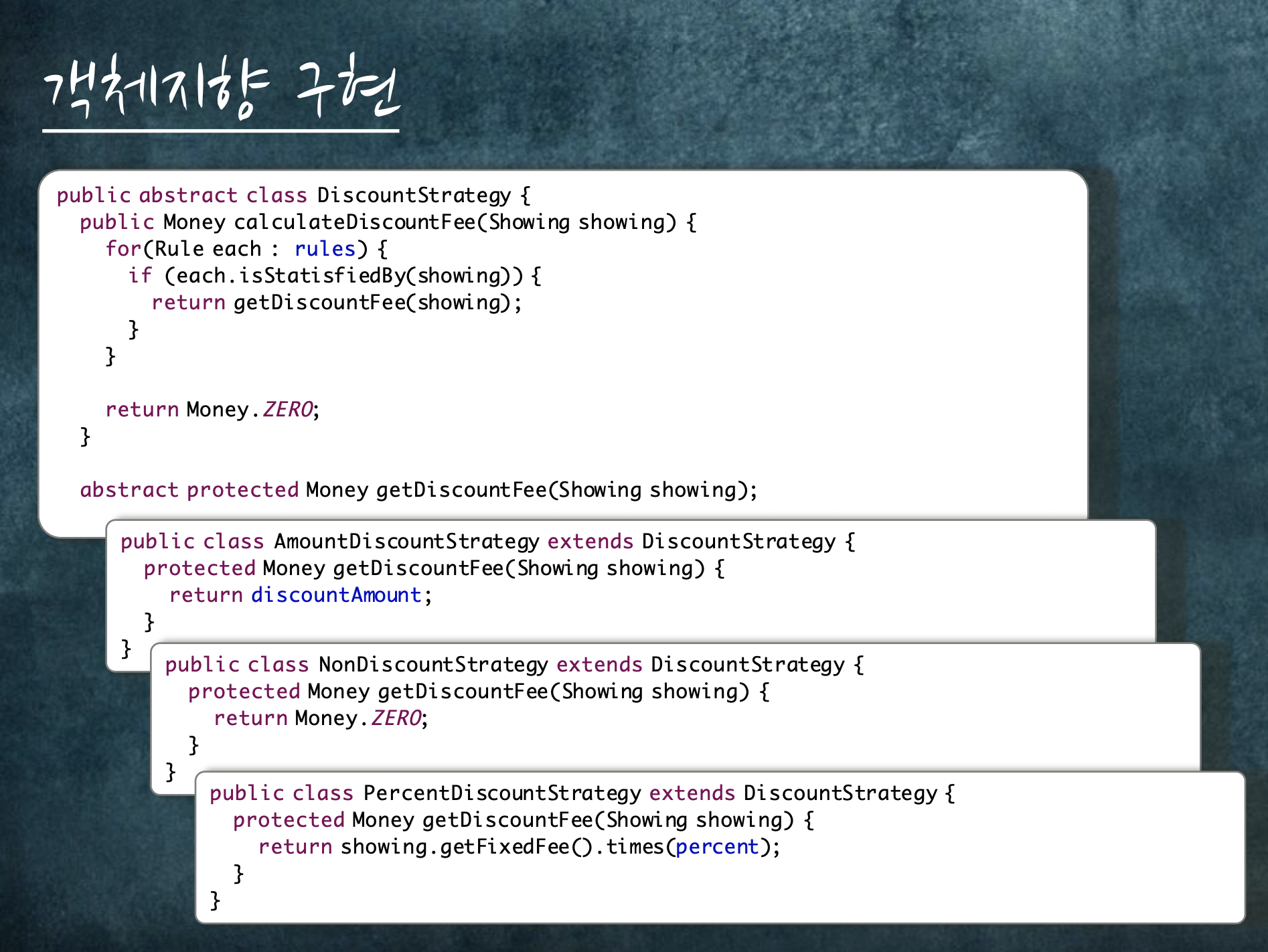 그럼에도 불구하고, 객체지향적으로 완벽하게 코딩할 수는 없습니다.