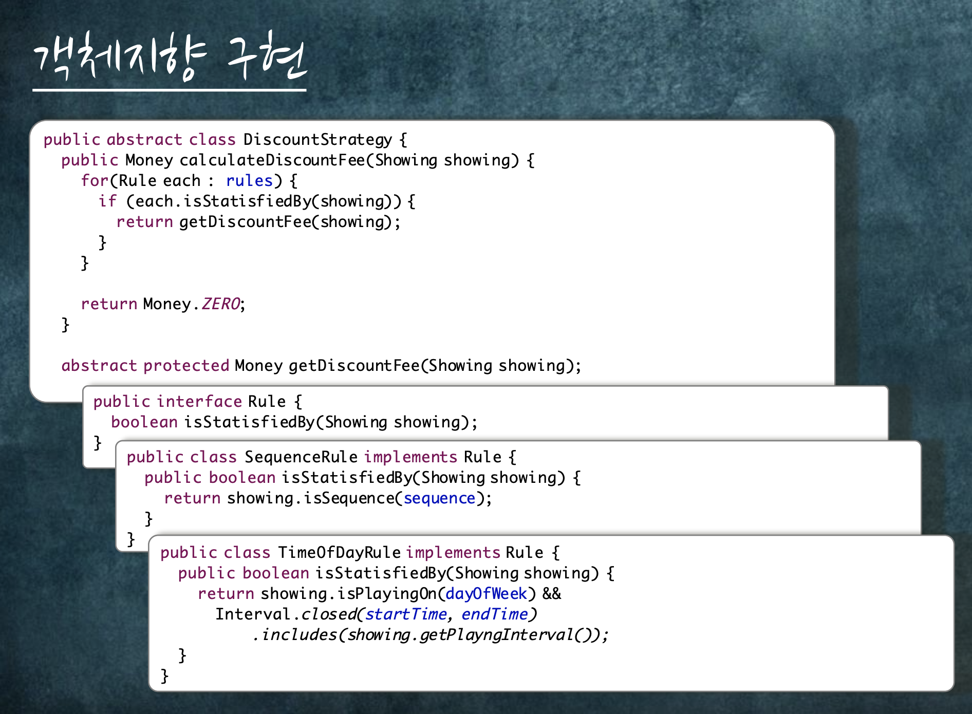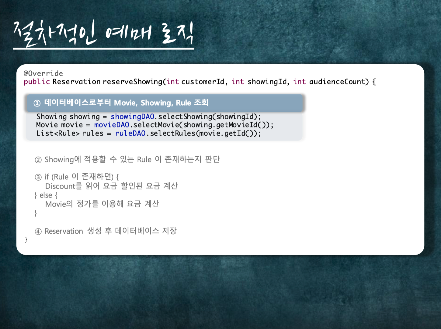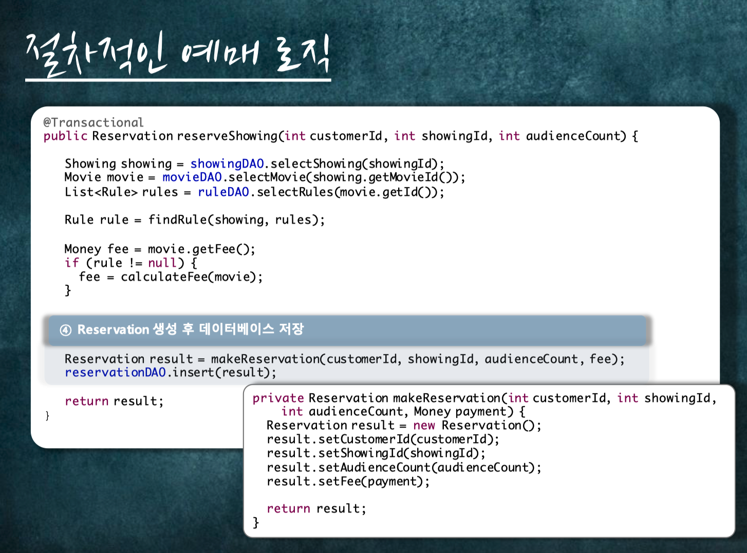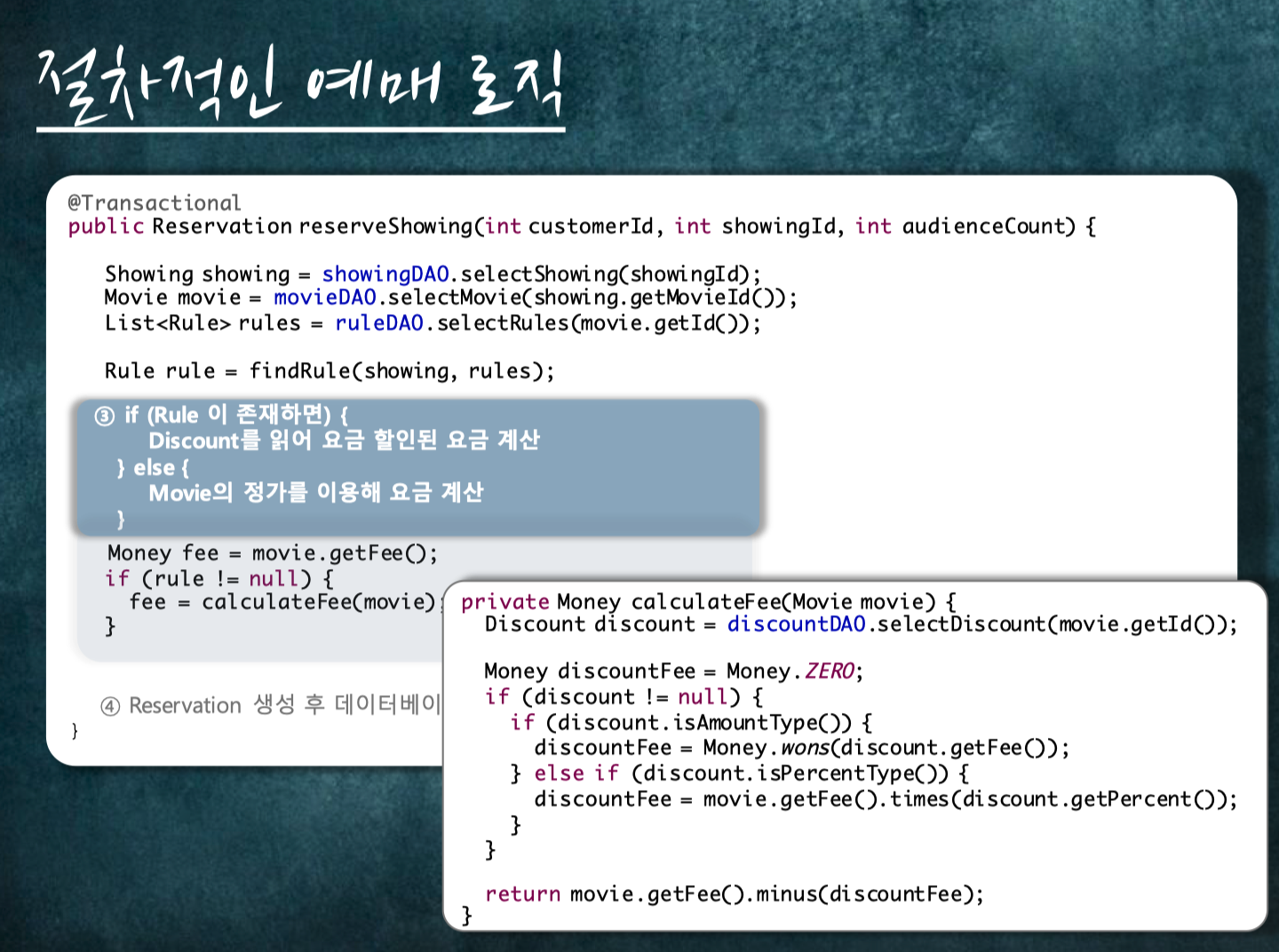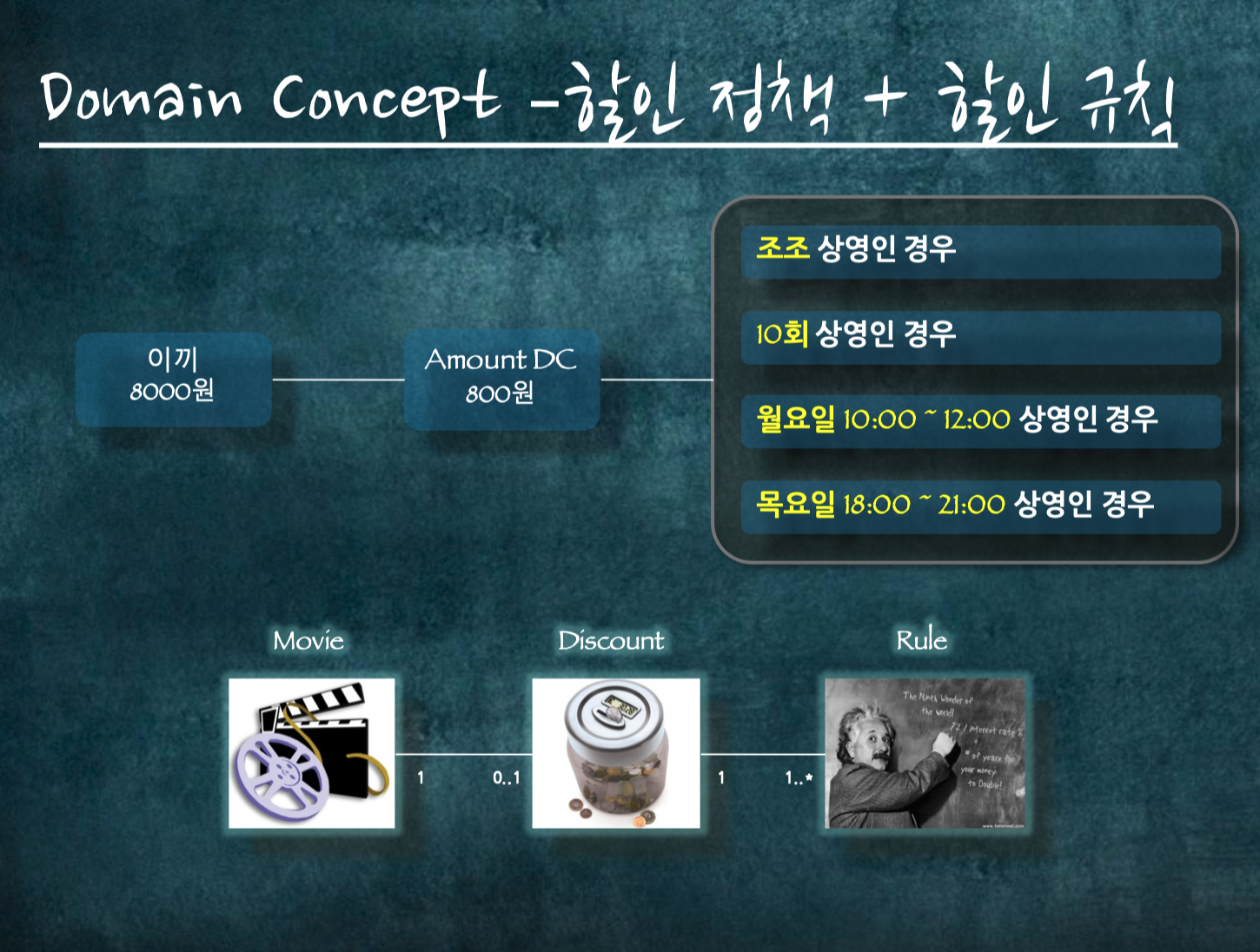 영화관에서 영화를 상영하는 도메인을 예제로 OOP를 설명합니다.