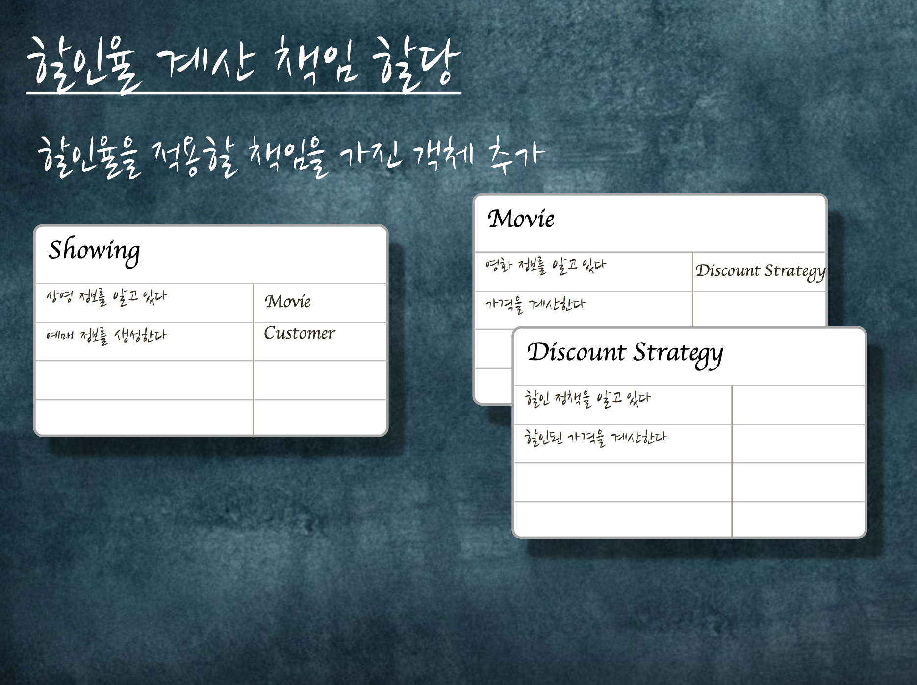 CRC Card라는 도구를 사용해서 객체의 역할을 정한다.