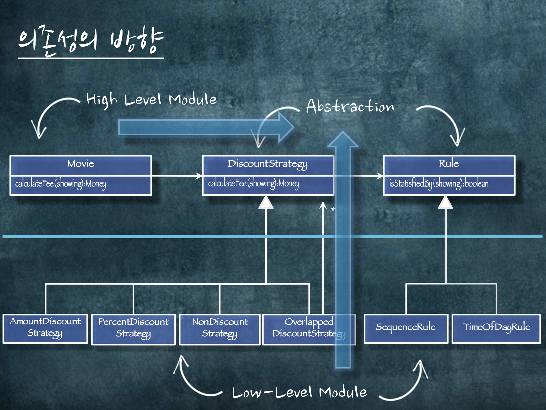의존성 방향을 역전 시킵니다. 이것은 우리가 말하는 SOLID 원칙 중 하나에 해당됩니다.