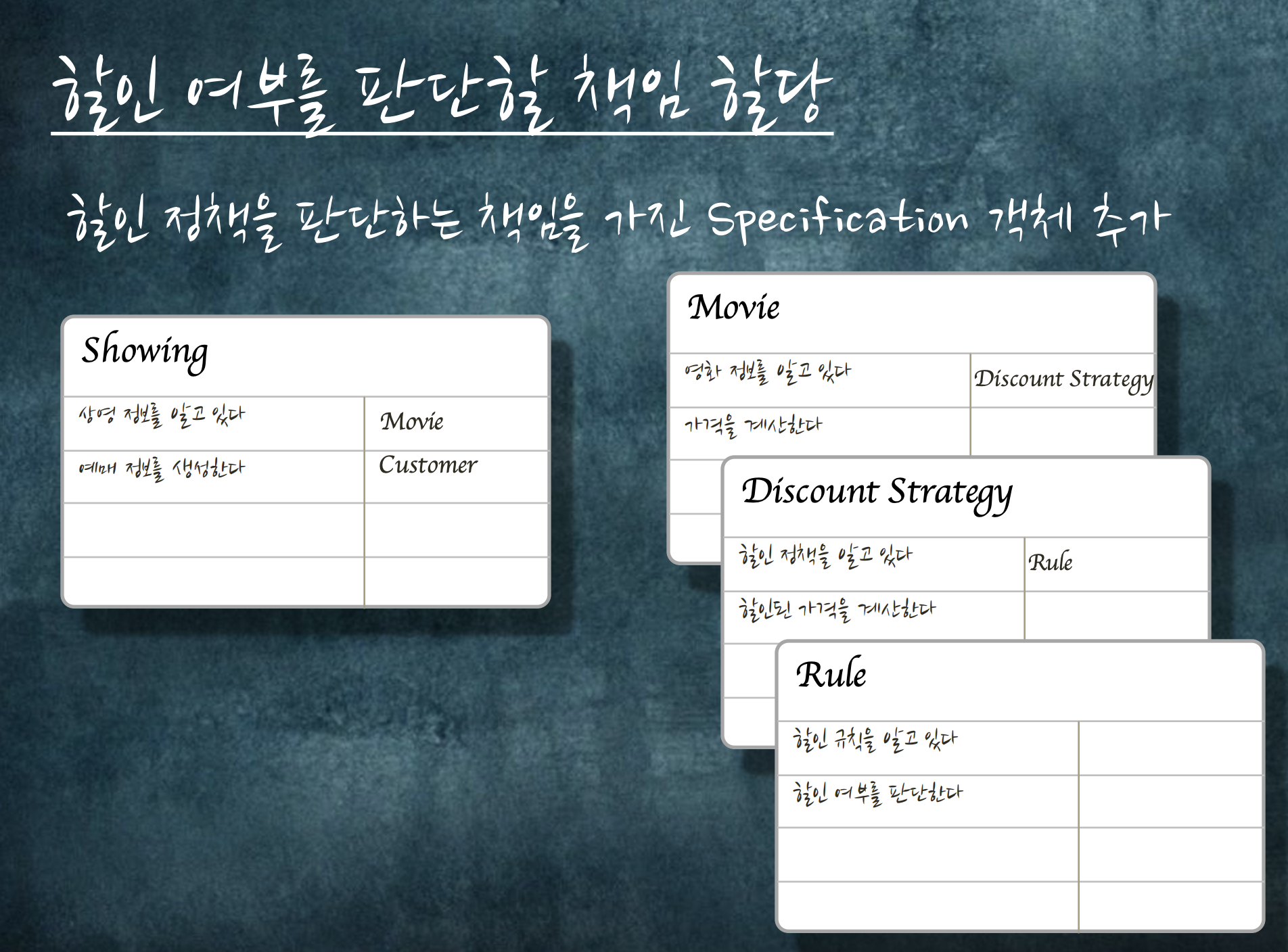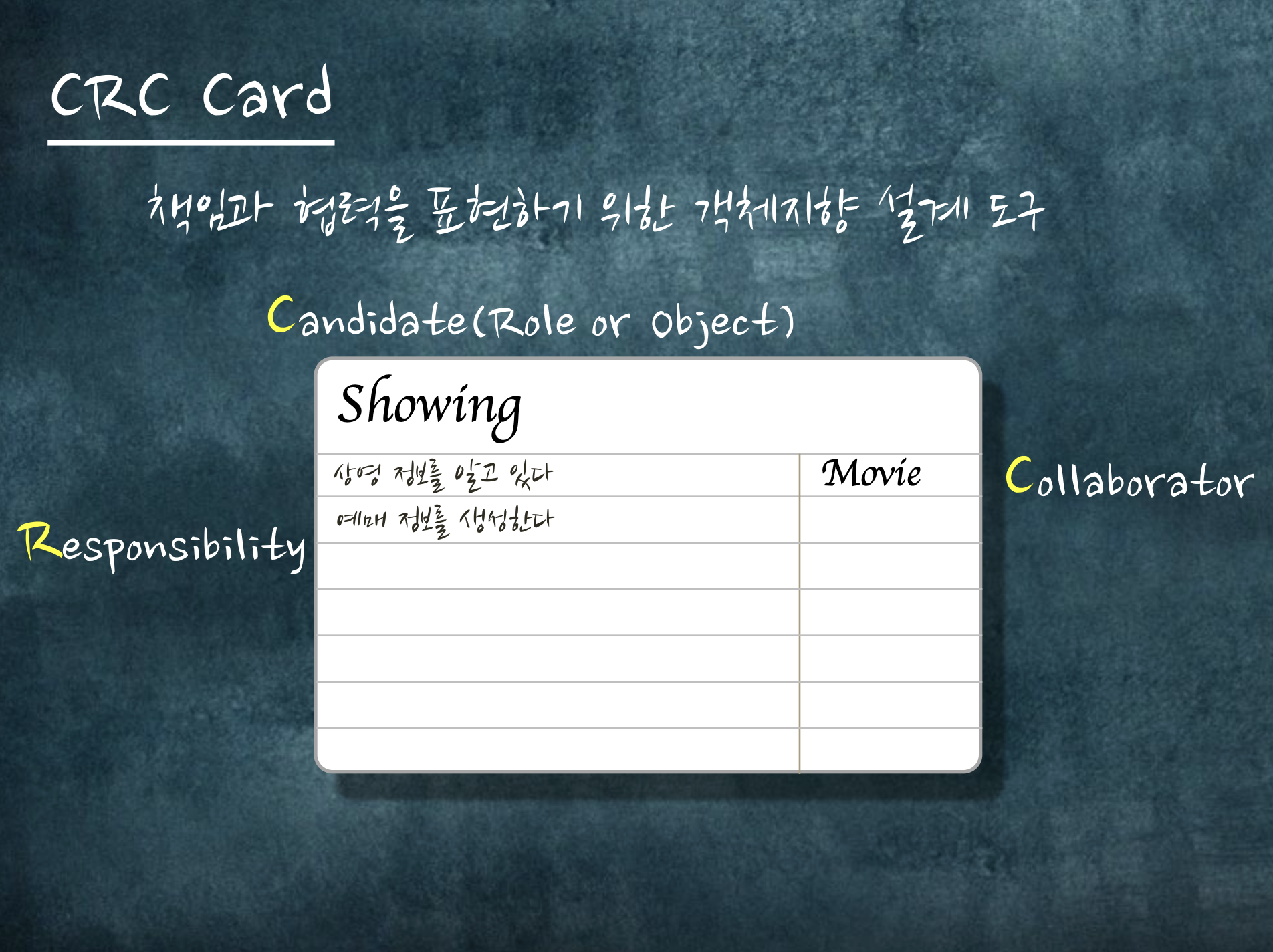 CRC Card라는 도구를 사용해서 객체의 역할을 정한다.