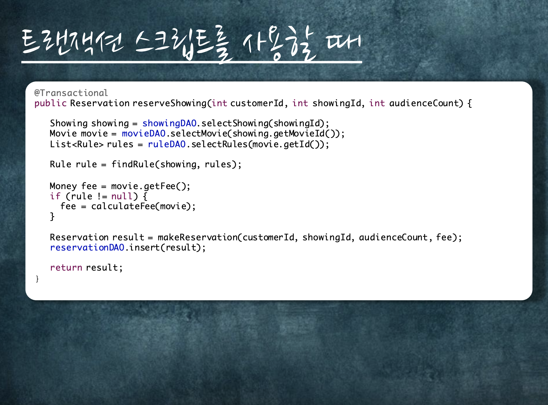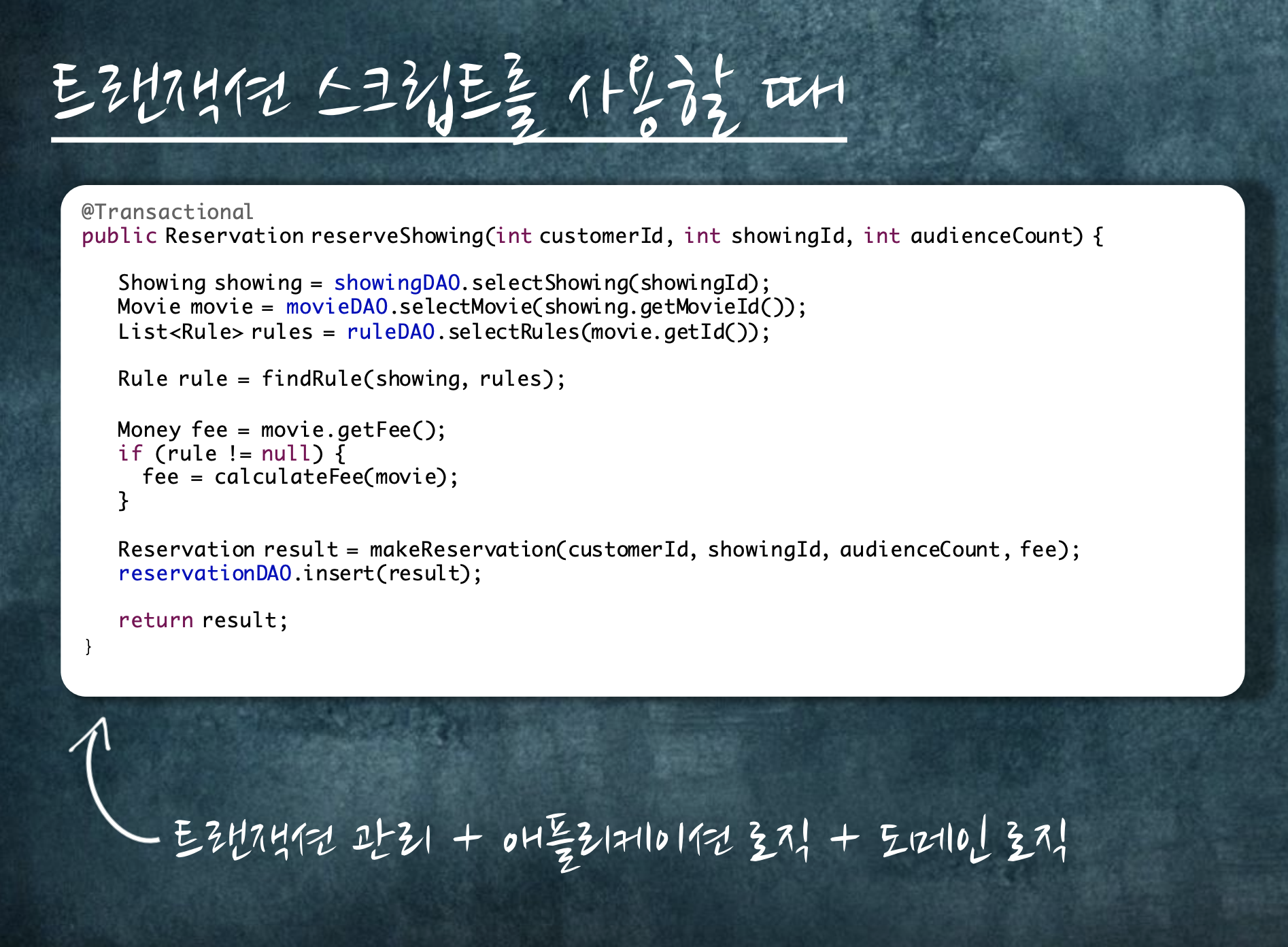 Transactions script 라고 불리는 개발 방식이라 할 수 있다.