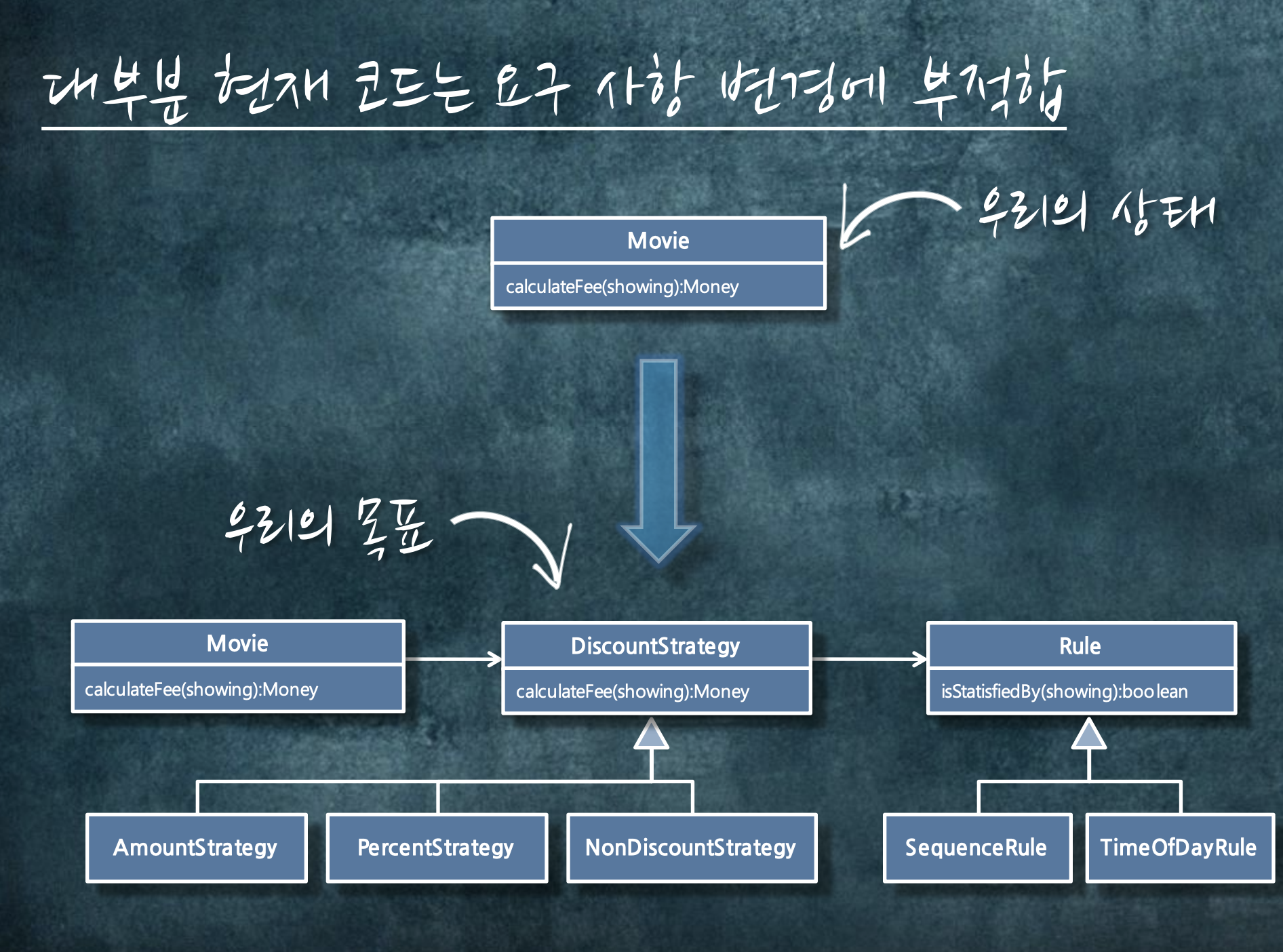 그러므로 최대한 단순하고 심플하게 만들어야 합니다. 그래야만 변경이 발생할 때마다