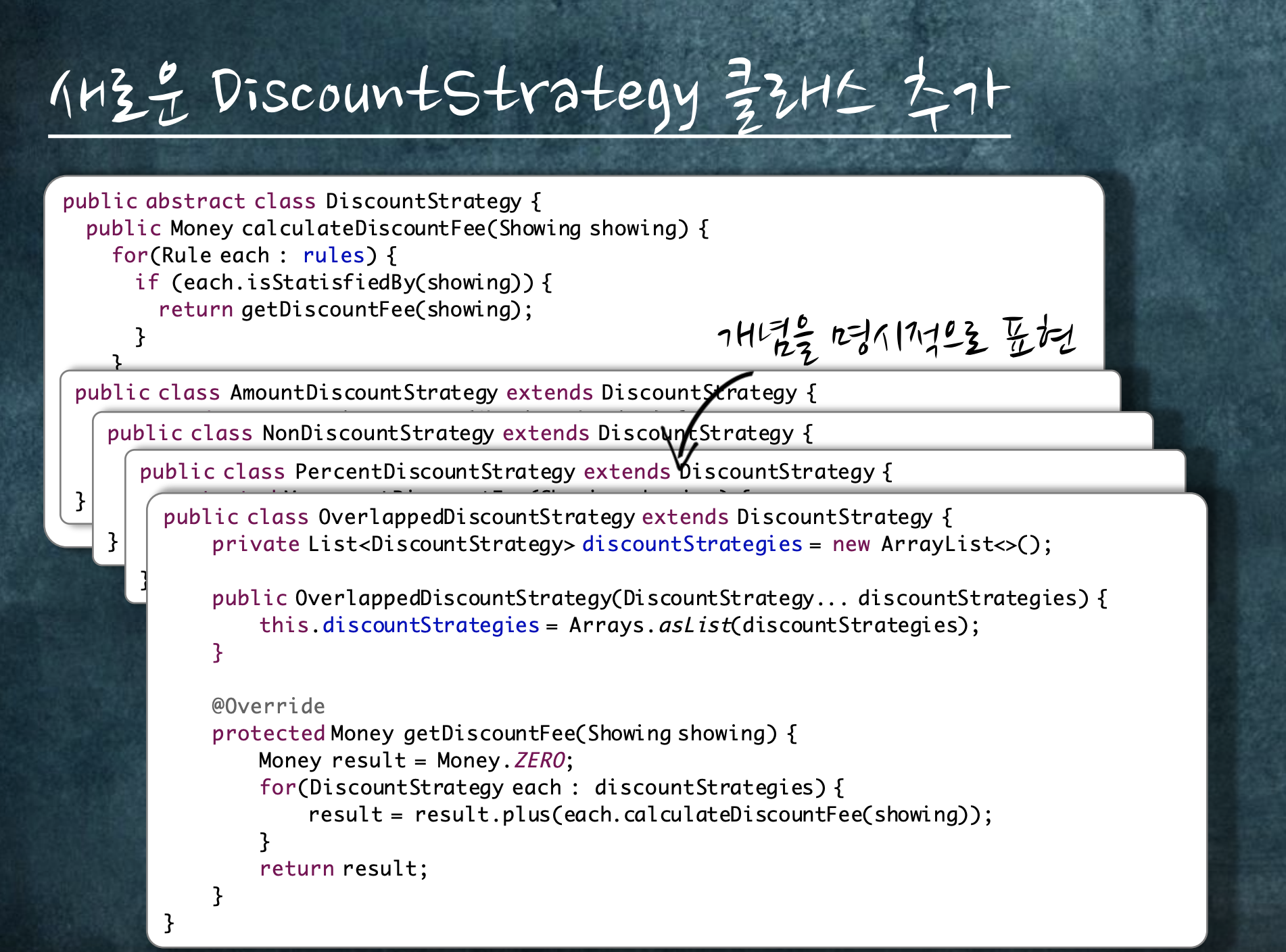 기존 코드를 수정하지 않고, 새로운 클래스를 만듬으로써 문제를 해결했습니다.