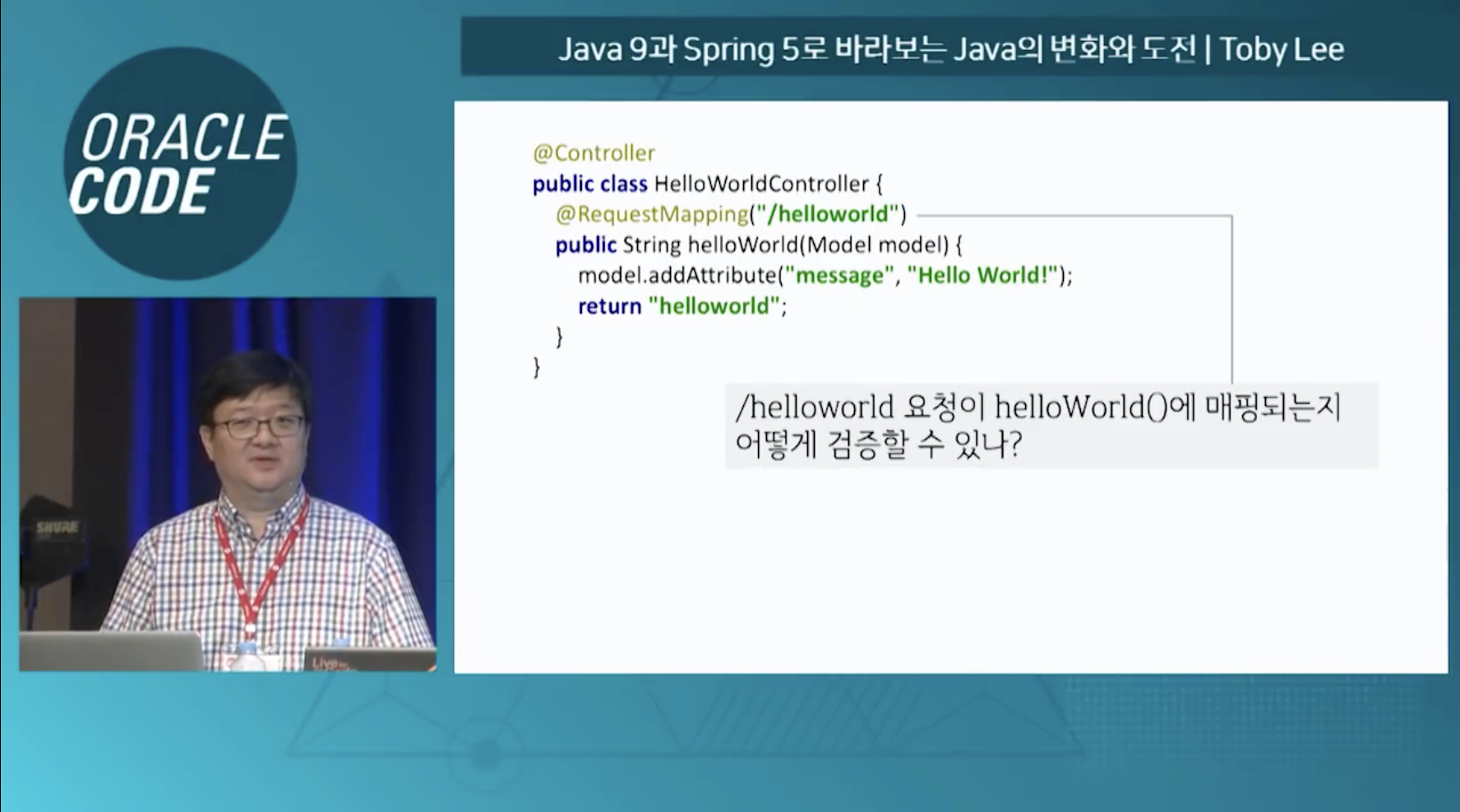- 웹 요청을 처리하는 모든 작업을, 동작하는 자바 코드로 표현