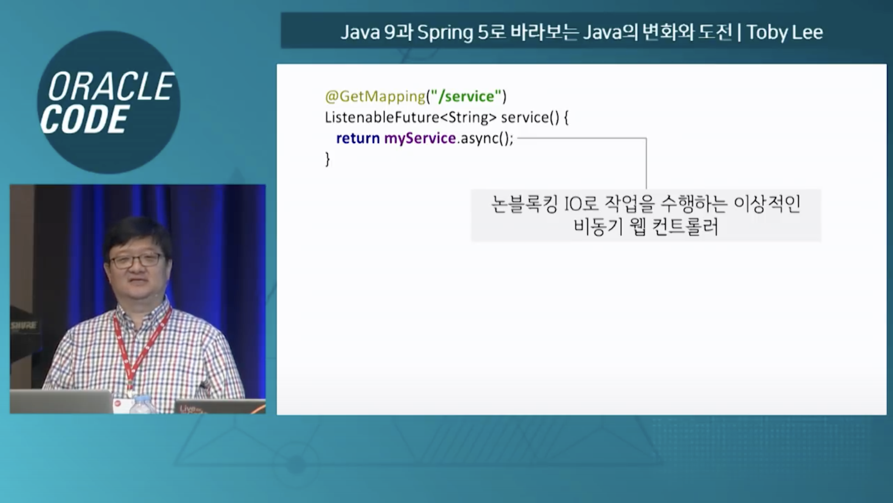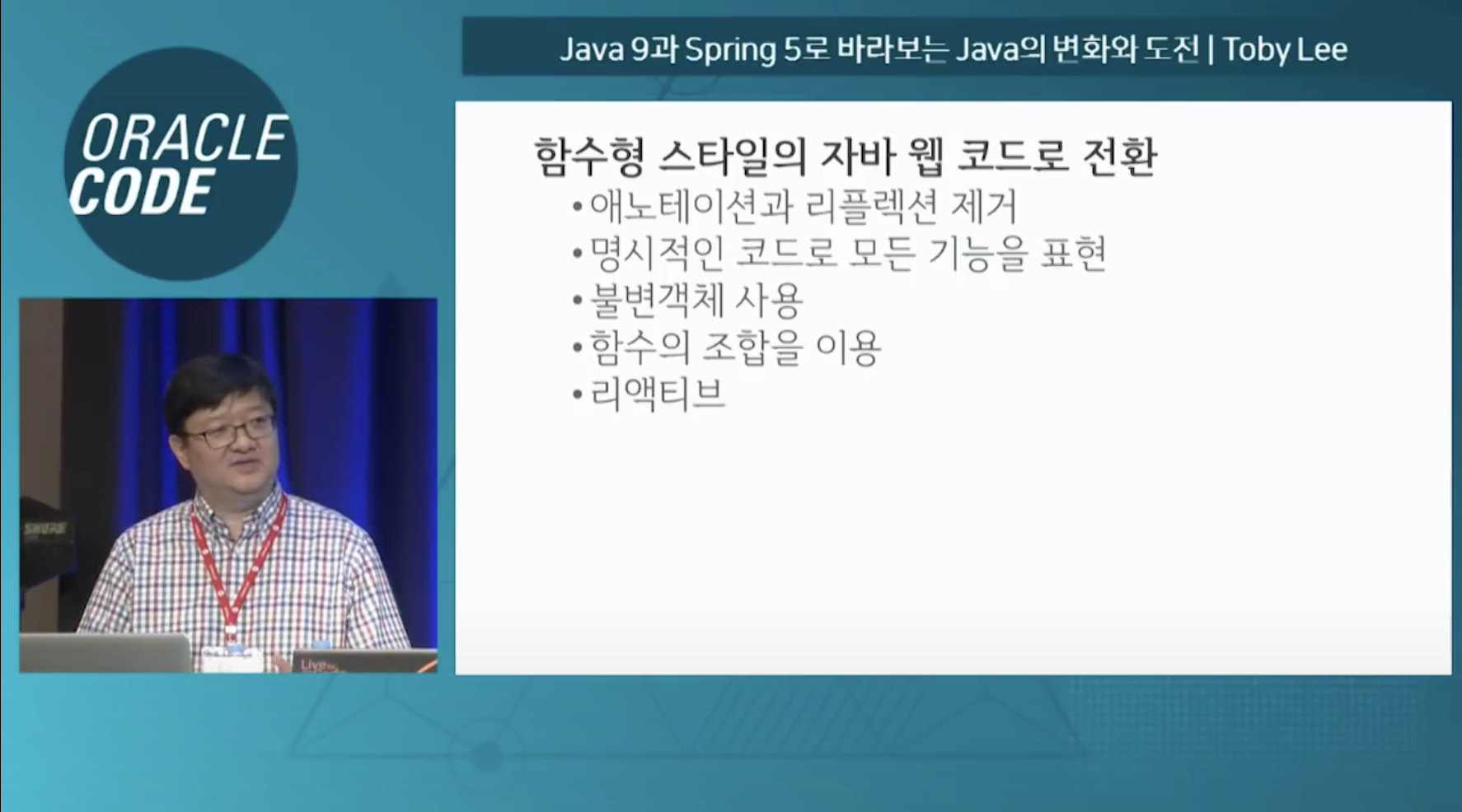 함수형 프로그래밍 스타일의 자바와 비동기 논블록킹 지원 서블릿, 스프링이 등장합니다.