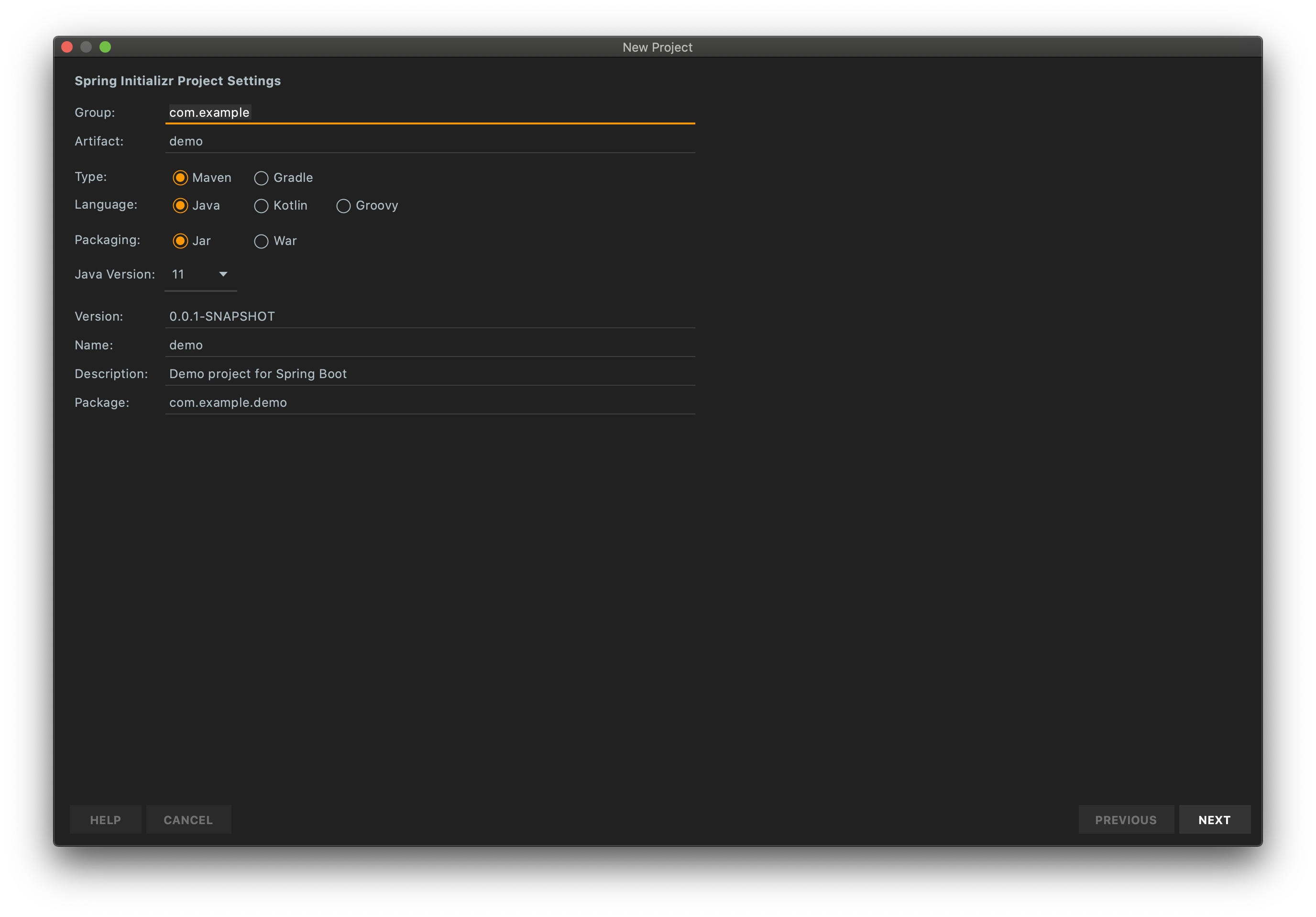 스프링 이니셜라이저를 통해 생성하기 위한 선택사항으로 중간에 package 에 Jar, War 가 있다.