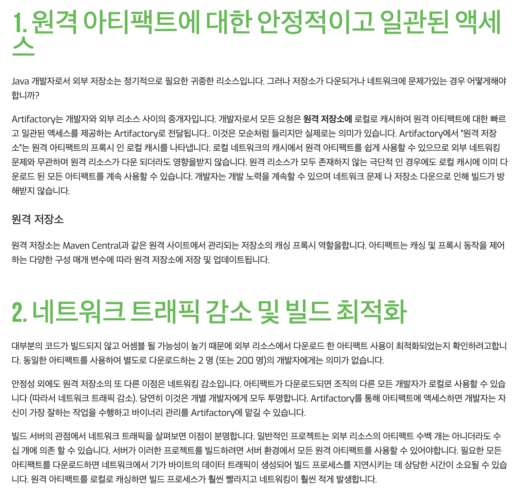 살펴보면서 가장 큰 특징으로 Artifactory 가 존재함으로써 얻게되는 효율성이 좋다 는 것을 알게 되었습니다.