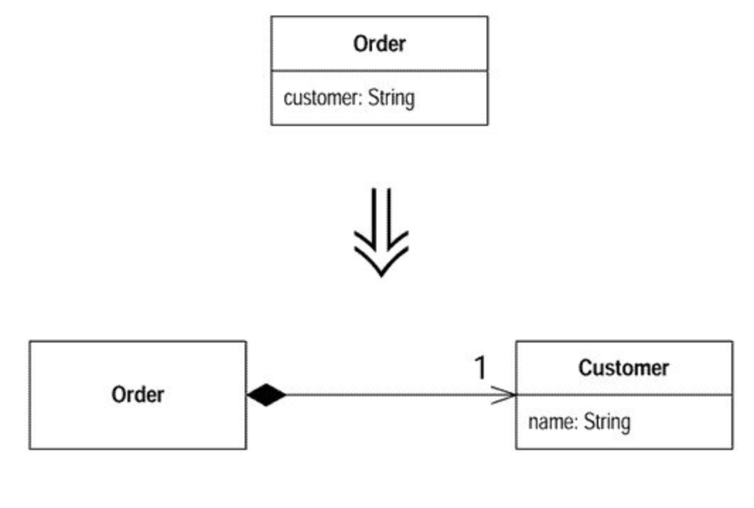 객체를 처음 접하는 사람은 보통 숫자와 통화를 연동하는 돈 관련 클래스나 전화번호와 우편번호 같은 특수 문자열 클래스 등의 사소한 작업에 작은 객체를 잘 사용하지 않으려는 경향이 있습니다. 이러한 우물 안 개구리를 벗어나려면 데이터 값을 객체로 전환(Replace Data Value With Object) 리팩토링 기법을 사용합니다.