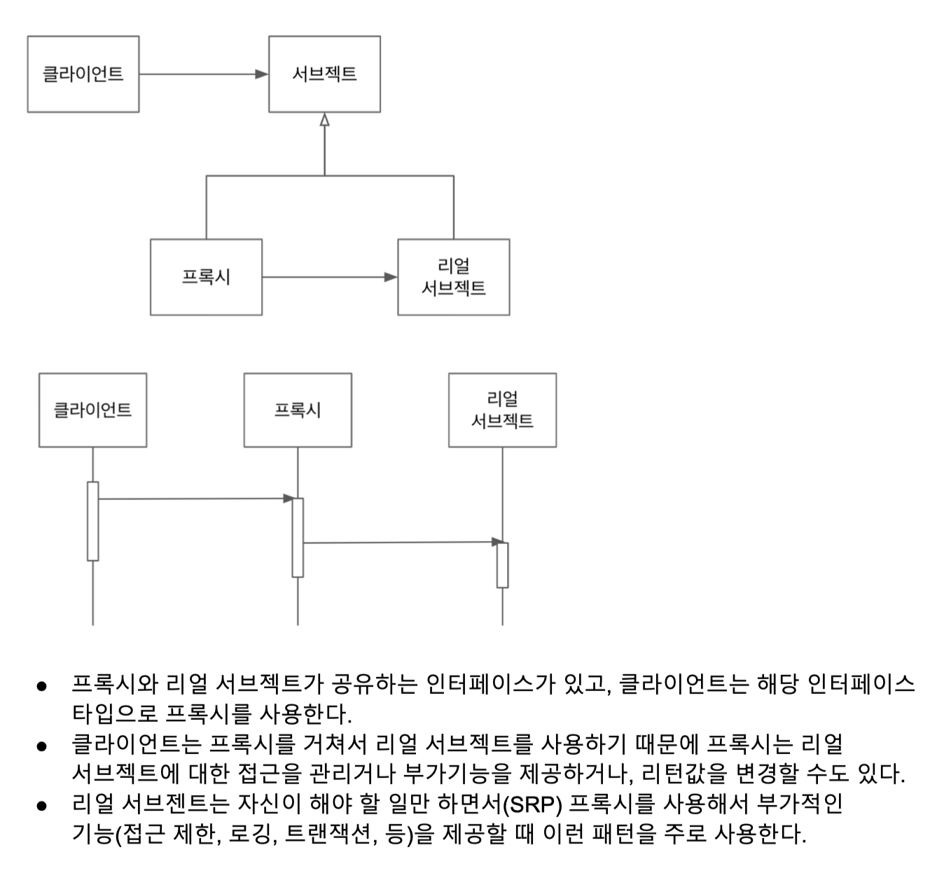 사실 프록시라는 말 때문에, 무엇인가 이해하기 어려워지는 현상이 분명히 있는 것 같습니다. 프록시는 단순히 A -> B 가는 데 있어서, 중간에 비서와 같은 업무를 해주는 객체를 놓는 것을 의미합니다. 즉, A -> C -> B 이런 식으로 말이죠.
