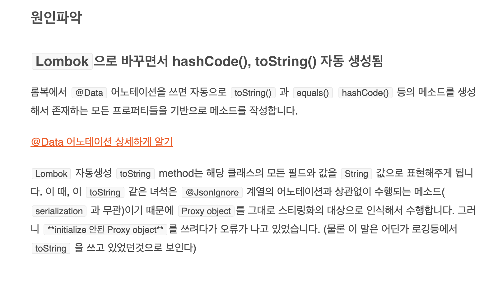 2. 무분별한 롬복의 @Date 사용, Proxy 객체의 toString()을 사용하려는 시도 중에 발생